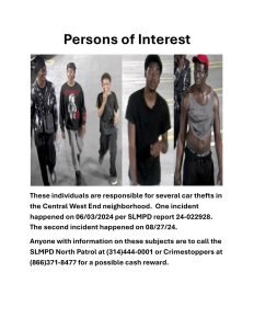 These individuals are responsible for several car thefts in the Central West End neighborhood. One incident happened on 06/03/2024 per SLMPD report 24-022928. The second incident happened on 08/27/24.
